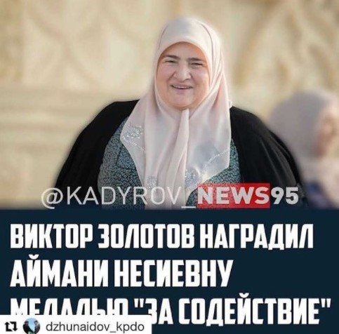 02.06.2021udo_grozrayona#Repost @dzhunaidov_kpdo (@get_repost)・・・Щедрость и милосердие , которые коснулись каждого нуждающегося ...Решением директора ФСВНГ - Главнокомандующего войсками НГ Виктора Золотова, Президент Регионального Общественного Фонда им. Первого Президента ЧР, Героя России Ахмата-Хаджи Кадырова (Дала г1азот къобал дойла цуьнан), всеми нами уважаемая Аймани Несиевна награждена федеральной службой национальной гвардии РФ медалью "За содействие". Кроме того, коллектив благотворительной организации удостоен Почетной грамотой от силового ведомства.Мы все знаем о том, какую заботу о семьях погибших при исполнении сотрудников проявляет Аймани Несиевна. Она держит на личном контроле каждую семью, которая потеряла кормильца. О ее благотворительных акциях можно говорить бесконечно. Данная наградаявляется жестом благодарности за оказание содействия в выполнении задач и осуществлении полномочий, возложенных на войска национальной гвардии РФ, за помощь в деле защиты интересов нашего народа и государства.Я искренне поздравляю Аймани Несиевну с очередной заслуженной наградой, желаю ей долгих лет счастливой жизни! Пусть Всевышний воздаст ей всеми благами обоих миров за ее щедрое и милосердное сердце! Дала т1аьхье беркате йойла вайн!#70летАхматХаджи